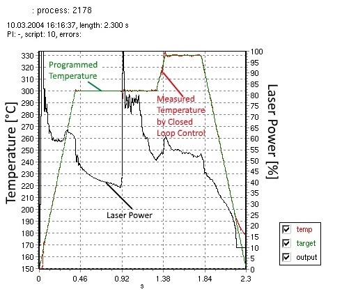 Mergenthaler激光模組可以實(shí)現(xiàn)溫度閉環(huán)控制,測溫單元可以在每秒最多檢查 10000次事實(shí)溫度,系統(tǒng)可以根據(jù)實(shí)測溫度的變化來實(shí)時(shí)改變激光功率,每秒可以最多反應(yīng)5000次。從而實(shí)現(xiàn)優(yōu)良的焊接控制。