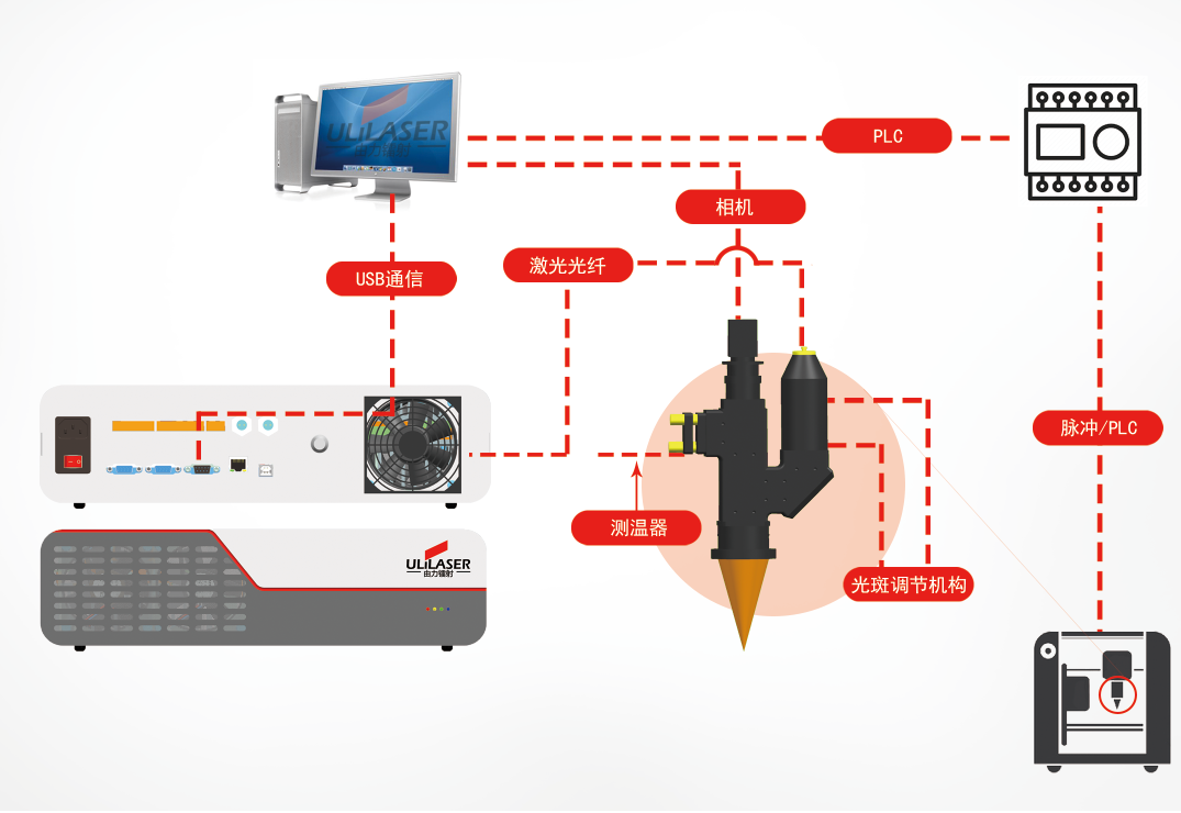 - 激光加工恒溫控制,對激光加工點溫度實時監(jiān)控,內(nèi)部閉環(huán)反饋,