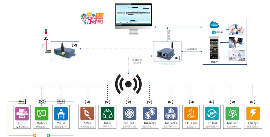 (4)具有手腕帶插標(biāo)帶報(bào)警及三色指示狀態(tài)的產(chǎn)品(市場(chǎng)獨(dú)家僅有),,方便員工自己發(fā)現(xiàn)自己的異常并馬上調(diào)整,再配合系統(tǒng)的智能語(yǔ)音播放,真正做到靜電防控有保障。