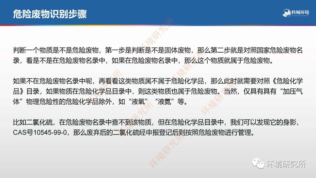 本文梳理了危險廢物識別的技術(shù)體系,危險廢物識別的步驟,并針對危險廢物識別過程中的一些特殊管理要求,如廢棄危化品的管理、未納入名錄的管理、豁免管理、不包括xxx的理解、混合后的危險廢物屬性判定等進(jìn)行了說明。
